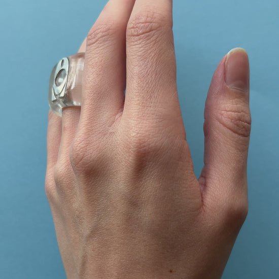 Resin ring with 3d printed stainless steel logo detail